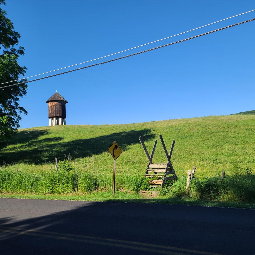 We passed beautiful farms, one with a cooler of eggs for sale. In fact, we were on Old AT, faded blazes and signage still visible. The couple with Kitt found us again, this time offering us a ride into town in their little Nissan. We declined, and they seemed to love our decision. It was a lovely walk lined with chicory and shaggy brown cows, watching us sleepily as we passed.